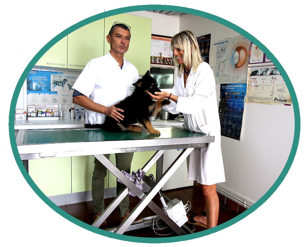 4 vétérinaires, 2 assistantes salariés: une équipe fière de sa devise “Aimer soigner votre fidèle compagnon en sachant que le maximum est accompli pour sa santé"
